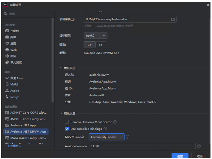Avalonia .NET MVVM App: 使用 MVVM(默认使用 RxUI)的桌面应用程序(Windows、macOS 和 Linux)模板。
